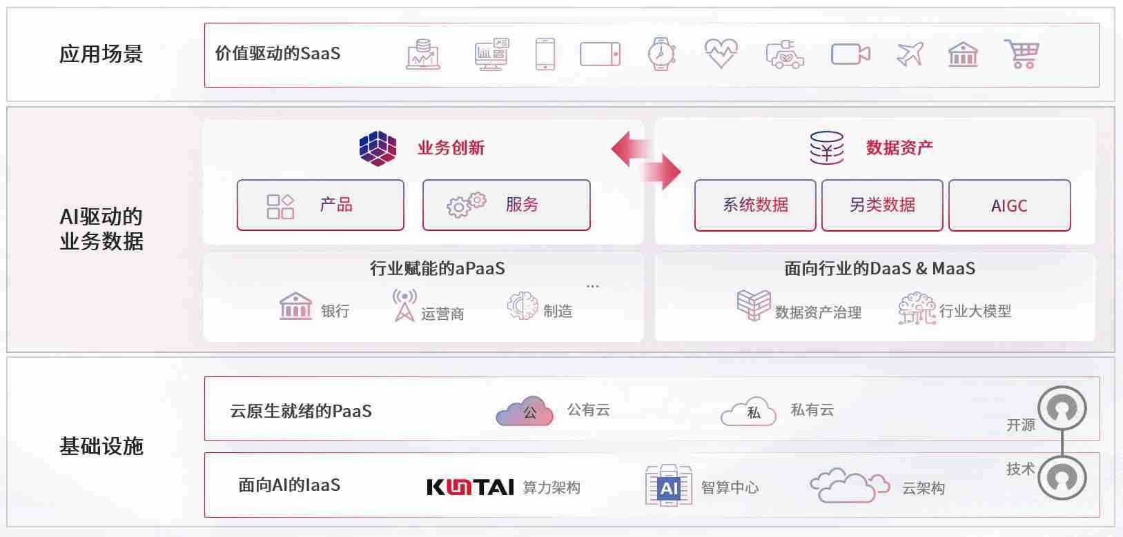 数字时代,,,,围绕企业数字化转型的关键要素,,z6mg人生就是博数码开创性的提出数云融合战略和技术体系框架,,,,着力在云原生、、、、数字原生、、AI原生和信创产业上架构产品和服务能力,,为处在不同数字化转型阶段的快消零售、、、、汽车、、、金融、、医疗、、、政企、、、、教育、、运营商等行业客户提供泛在的敏捷IT能力和融合的数据驱动能力,,构建跨界融合创新的数字业务场景和新业务模式,,,助力企业级客户建立面向未来的核心能力和竞争优势,,,,全面推动社会的数字化、、智能化转型升级。。